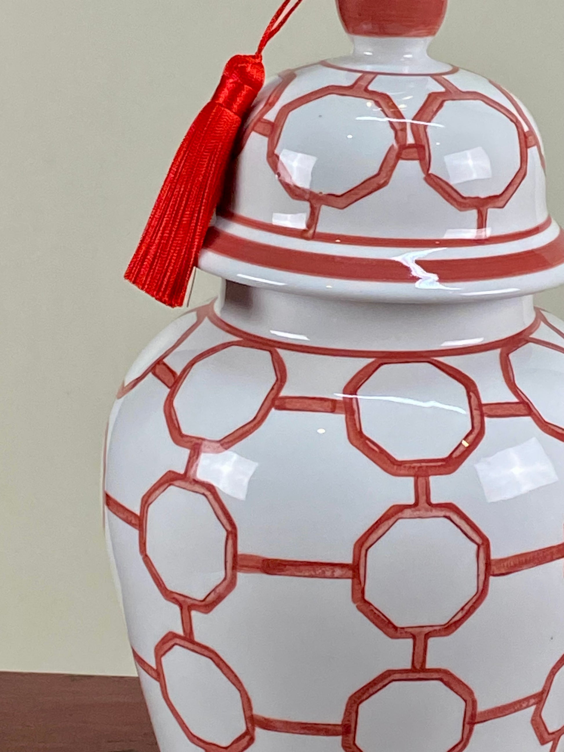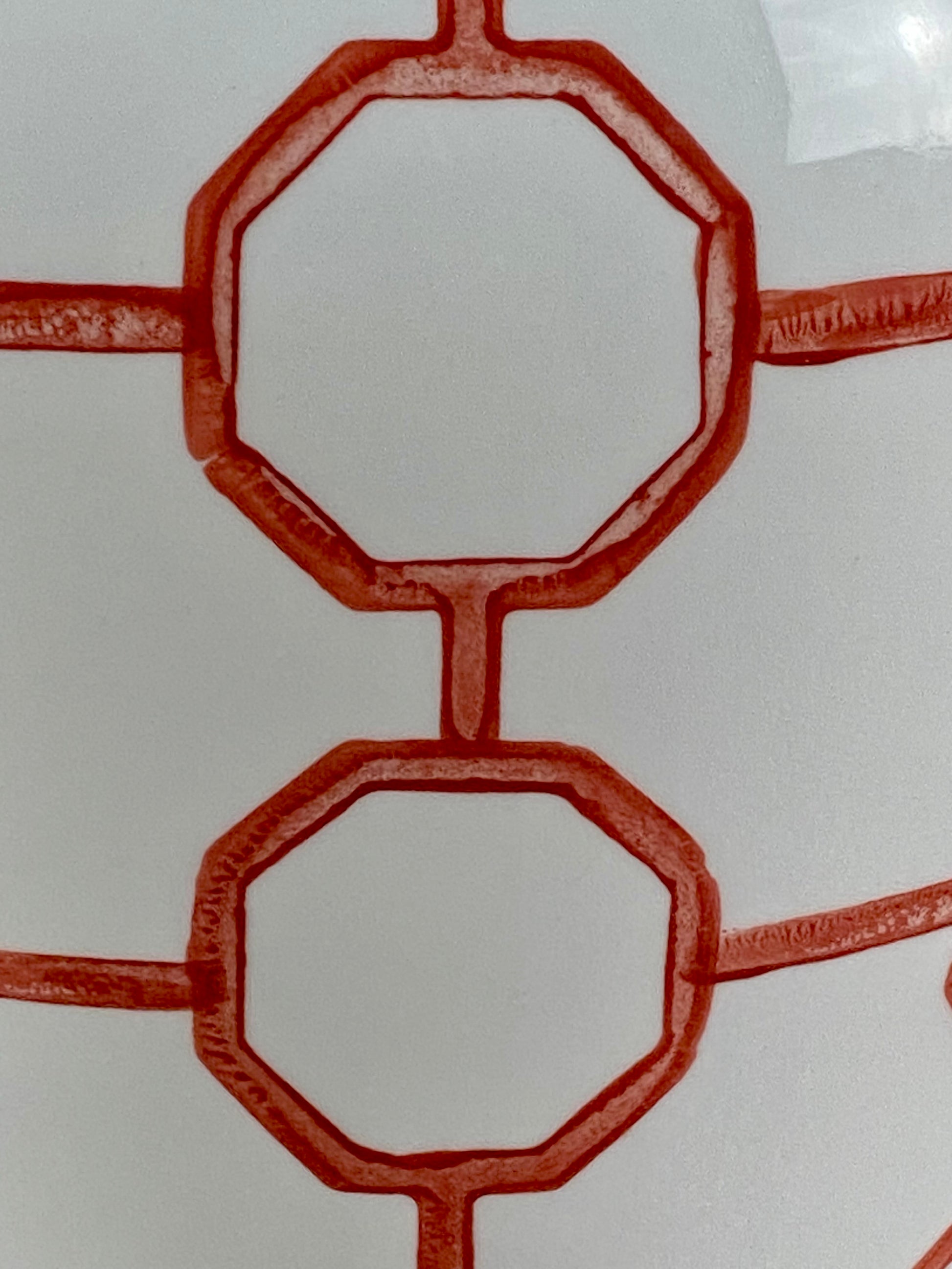 Elevate your space with the Merah design, featuring striking geometric red patterns set against a crisp white background. This sophisticated contrast brings a modern and elegant touch to any room, perfect for those who appreciate bold yet refined aesthetics.