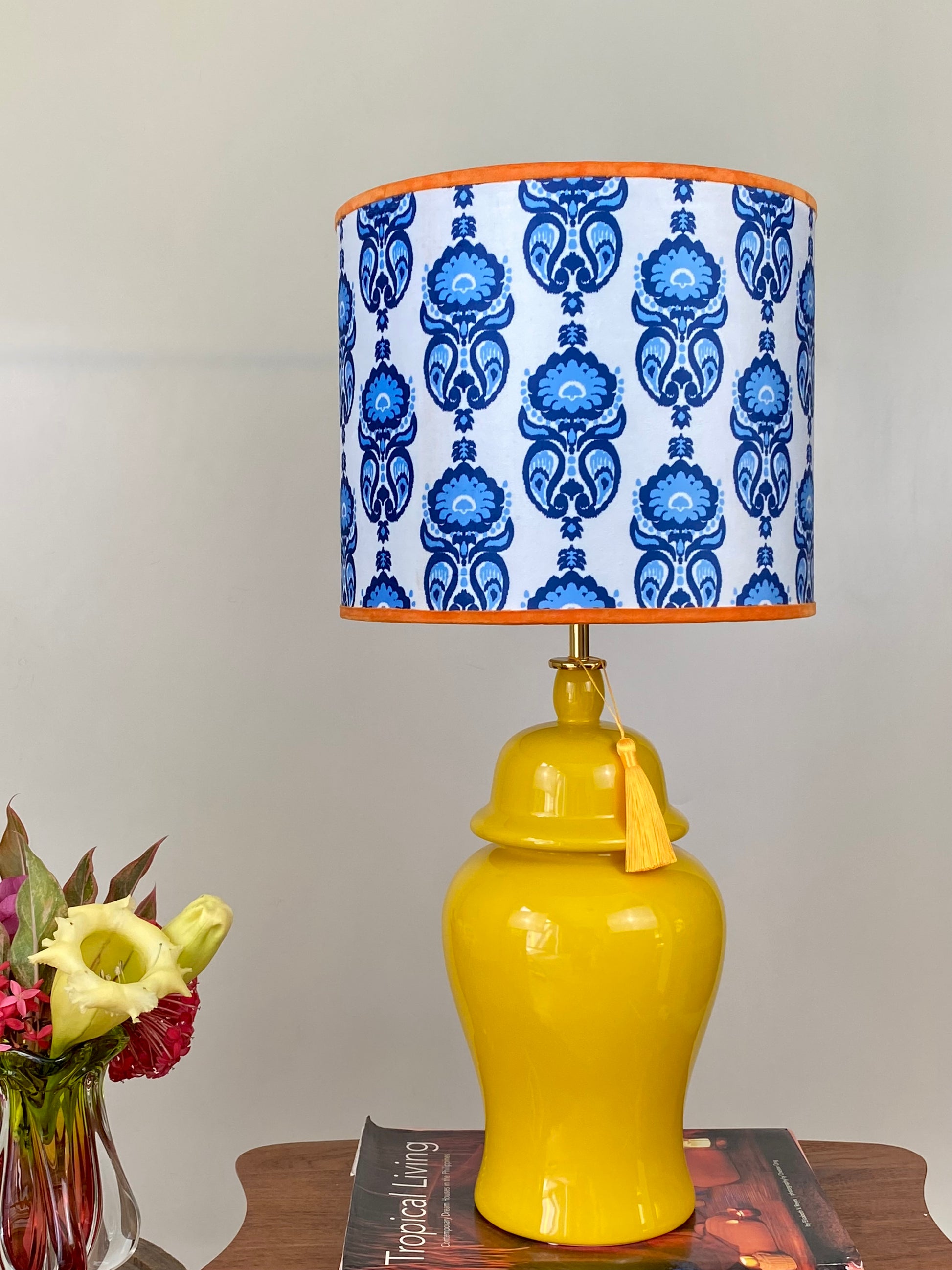 The Premita ikat print lampshade in blue and orange is a match made in colour heaven. The divine combination of colours is sure to delight anyone who enters your home. A definite conversation-starter.